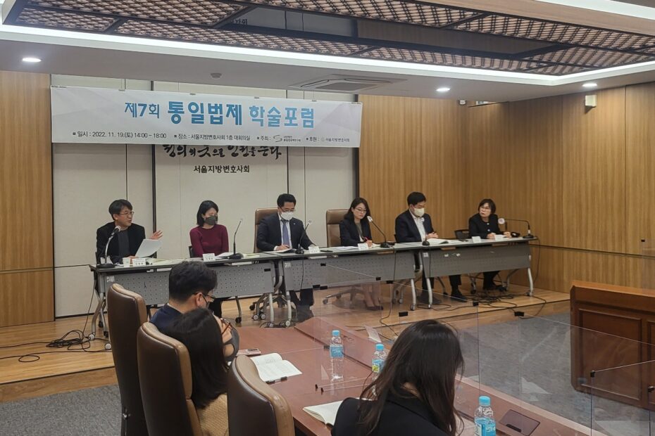 통일법정책연구회는 2022. 11. 19. 토요일 오후 2시 서울지방변호사회관 1층 회의실에서 제7회 통일법제 학술포럼을 개최하였습니다.